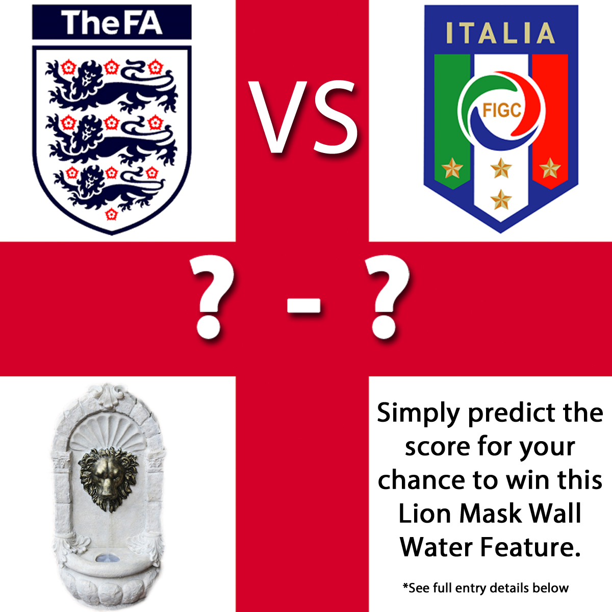 - All you need to do is predict the England vs Italy score correctly, leave your score in the comments box to be in with a chance of winning the Lions Mask Wall Water Feature.